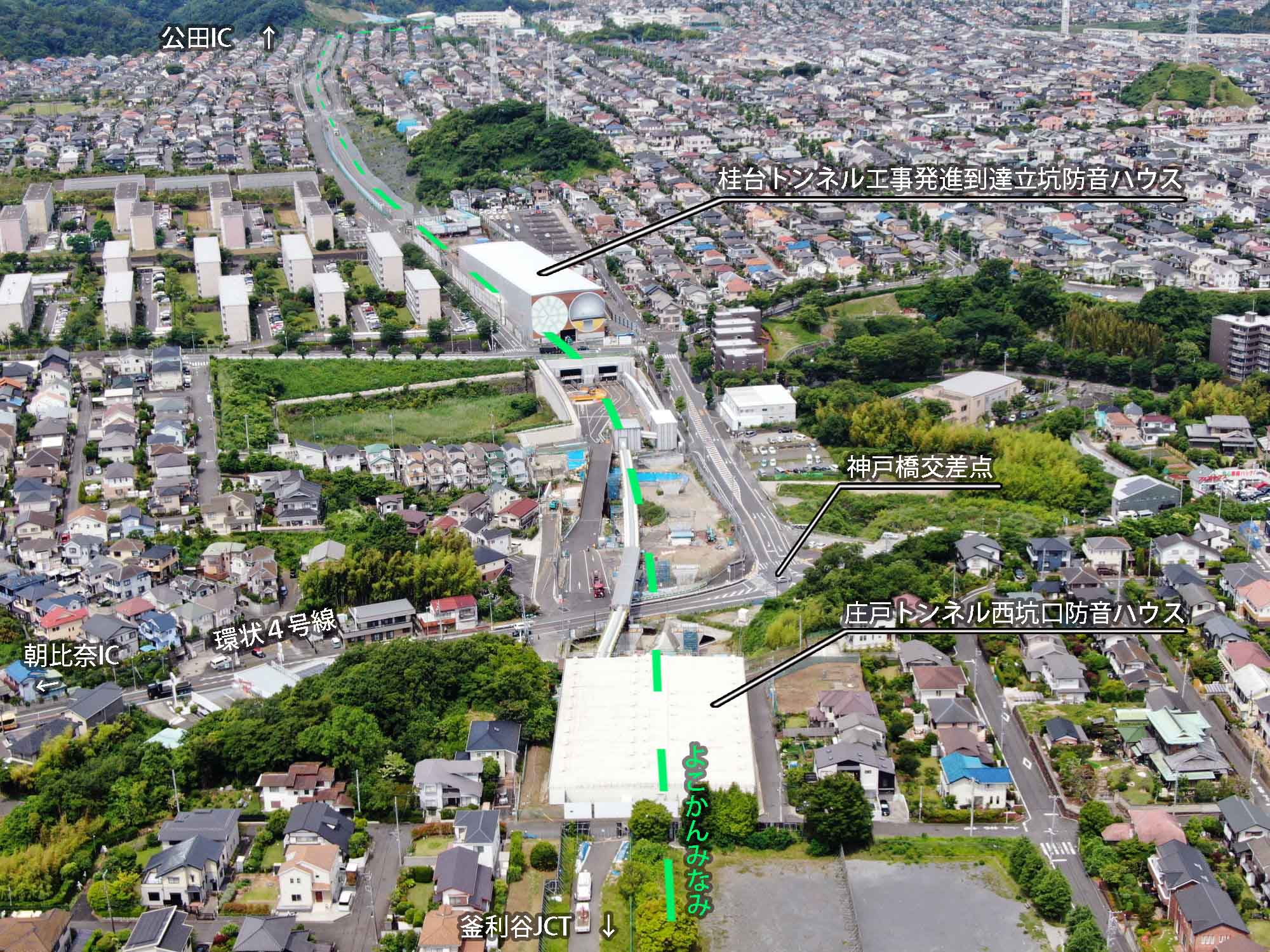 発進到達立坑内部。右側はシールドマシン発進後の上り線坑口