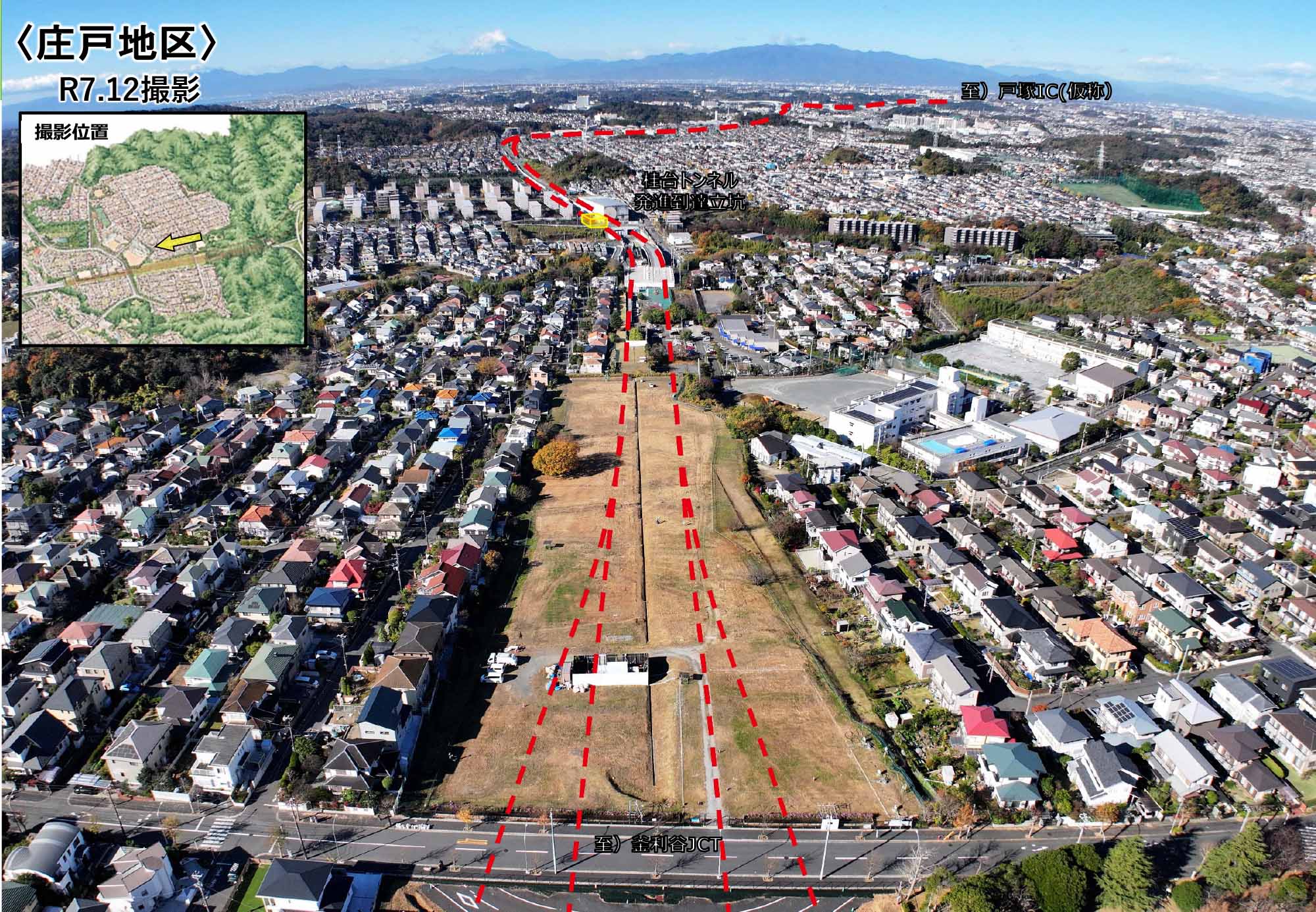 釜利谷庄戸トンネル工事上り線低土被り区間12月16日撮影