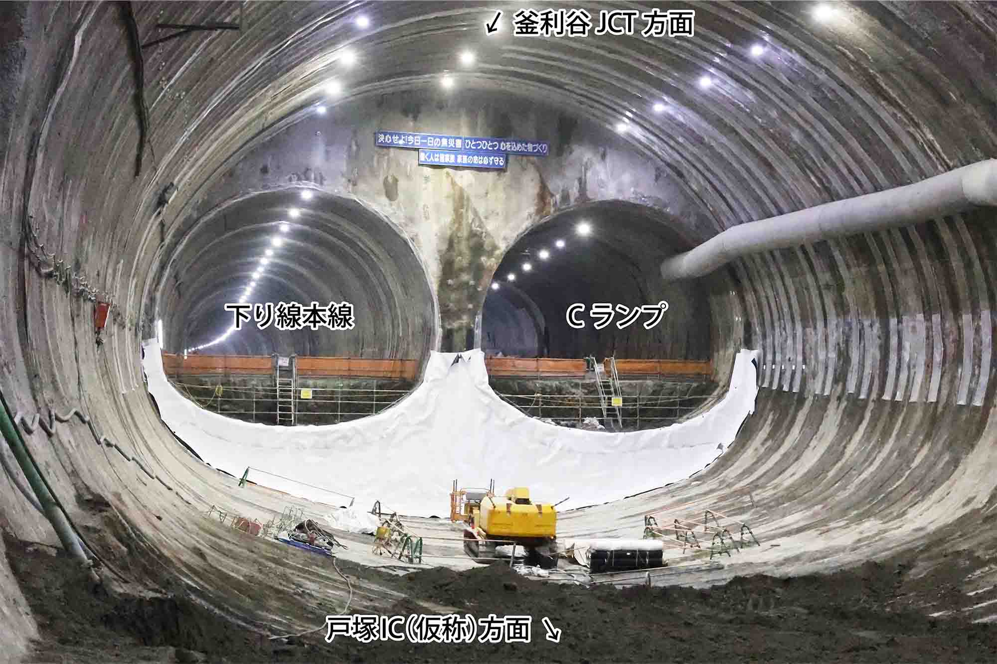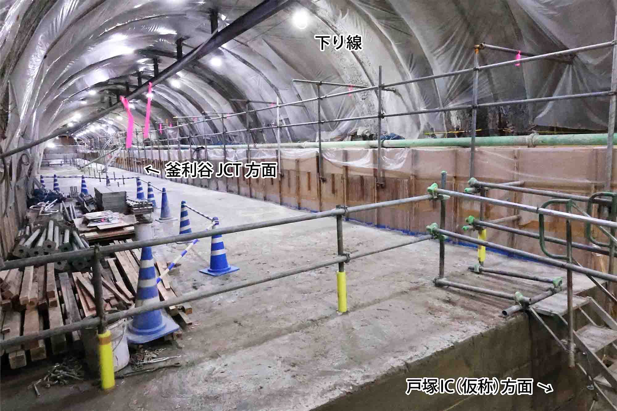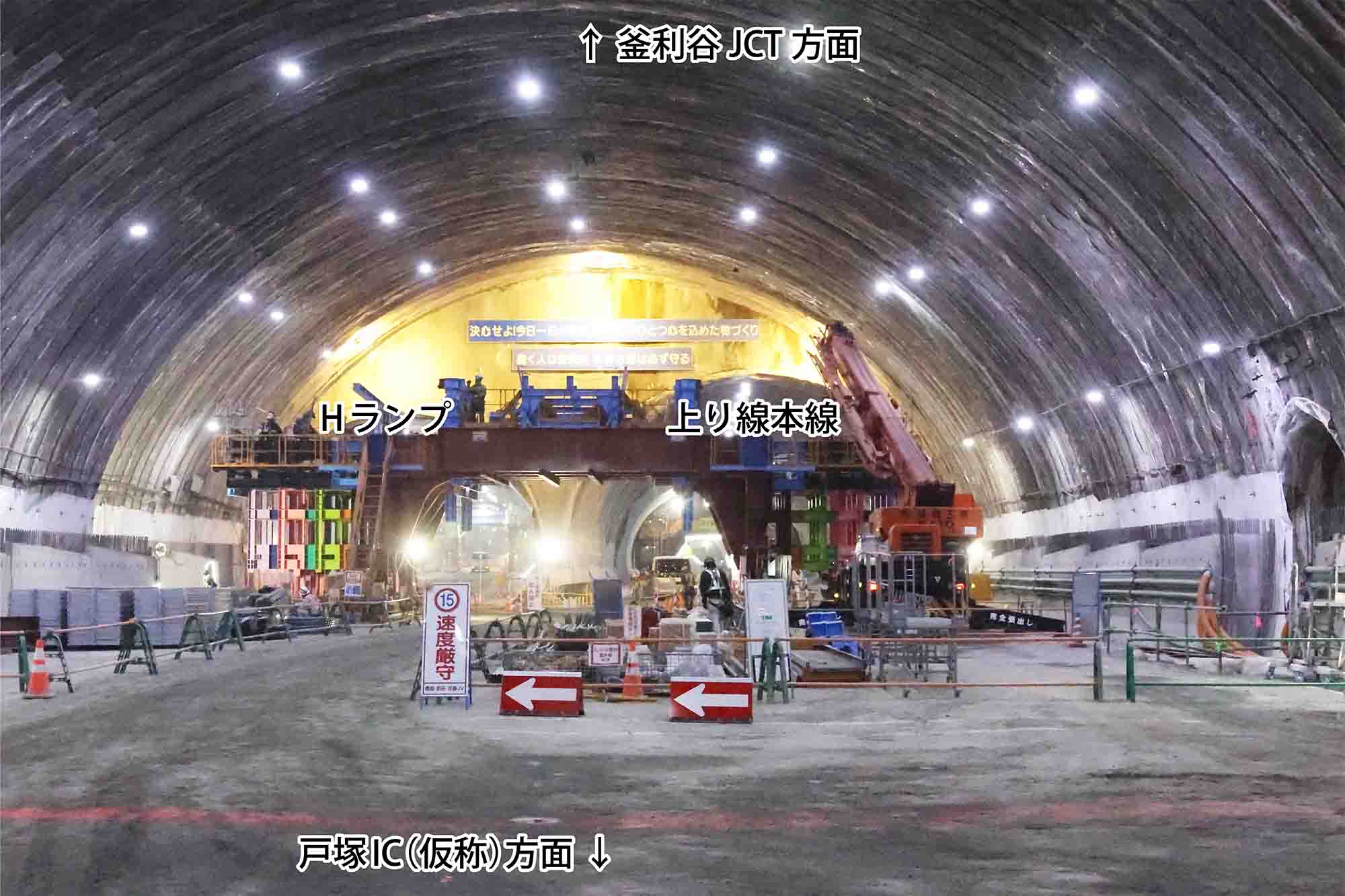 釜利谷庄戸トンネル工事上り線分合流区間12月16日撮影