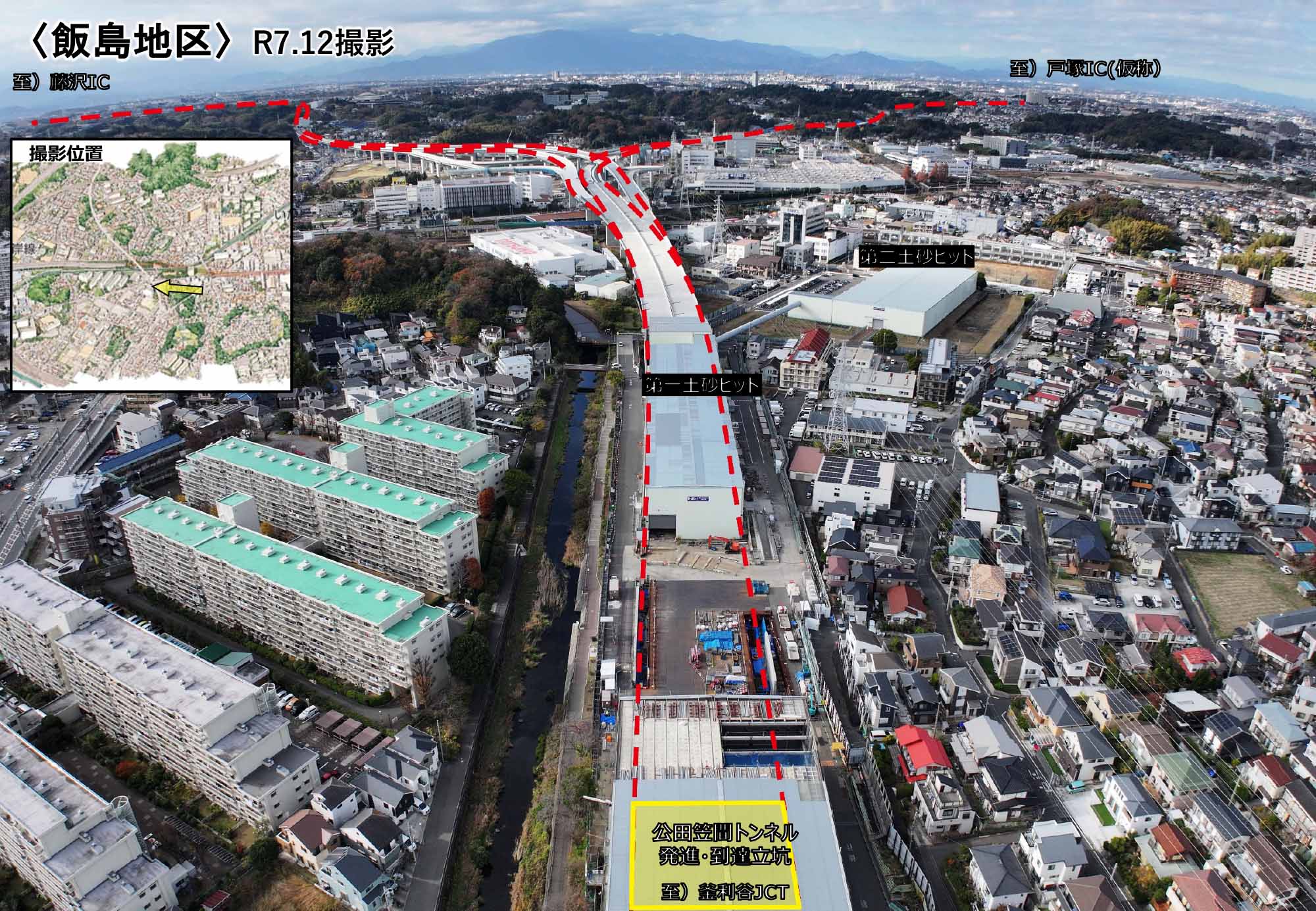 公田笠間トンネル工事発進到達立坑防音ハウス付近